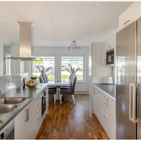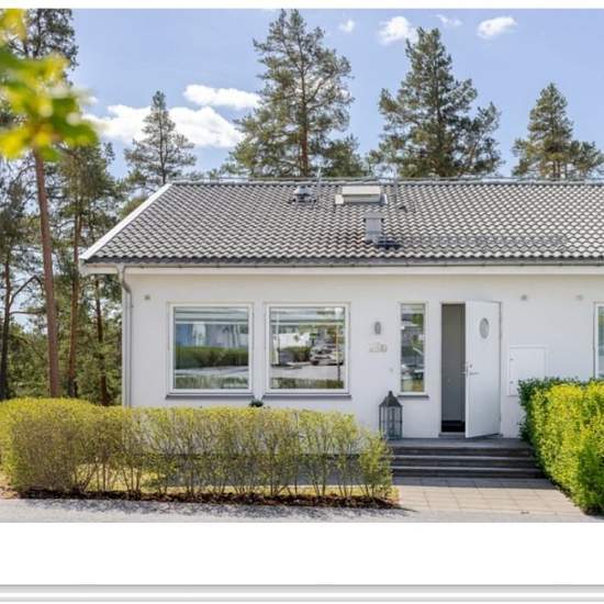 End-terrace townhouse with a nice corner plot in idyllic Söderby. The residence has 5 rooms, of which 3 are bedrooms. Generous social areas on the entrance level where the kitchen, dining area and living room are arranged in an open-plan layout. From the living room you step out onto the large south-facing balcony with space for furniture. Throughout the home there are attractive surface finishes as well as two fully tiled bathrooms and a separate laundry room. There are three spacious bedrooms, two additional living rooms and a large storag...