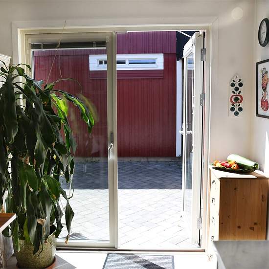 Socialt och praktiskt kedjehus i ett plan, med skogen som granne i väst. Huset har tre bekväma sovrum, tvättstuga med tvättmaskin, torkskåp och förvaring/diskbänk. Två badrum renoverade 2015 med badkar i ena och dusch i det andra. Köket är förhållandevis nyrenoverat med vitvaror från Smeg. Öppen spis från Nordpeis som gör höst och vinterkvällarna mysiga. Det finns mycket odlingsmöjligheter och sociala ytor både inne som ute i både östlig och västlig riktning. Två parkeringsplatser ingår, en utomhus och en inomhus. Huset ligger i ett mysi...
