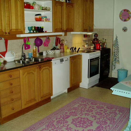 The house is heated with an energy-efficient heat pump. You can also use the wood stove and tiled stove for heating. There are 2 toilets and 1 walk-in closet. For those who enjoy gardening, there is a private greenhouse and land. It features a lovely garden with apples, cherries, plums, and pears. There is a storage shed and a stone-paved root cellar for your car. Please write a little about yourselves, and I will get back to you. Service fee for tenants: 346.
