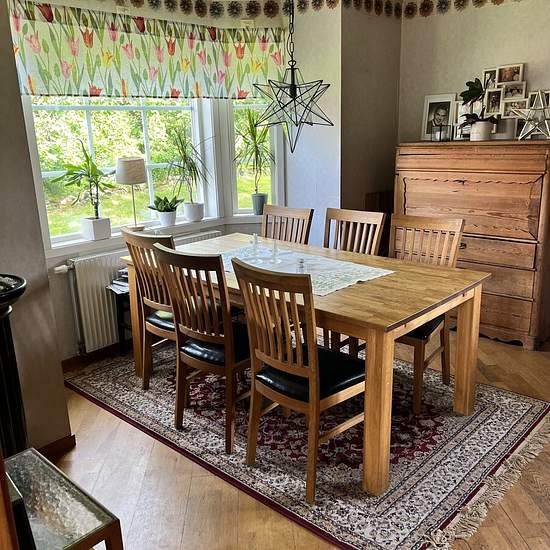 Centralt i Skällinge med enskilt läge. 300m till sjön o skola 100m till affär o busshållplats 5 rum o kök (126kvm) + källare Entréplan: hall, klädkammare,toalett o dusch, kök med burspråk, stort. vardagsrum (en flygel (piano)står i ena delen) 2:a plan: 3 sovrum, allrum Källare: stort badrum med jacuzzibad/dusch/toalett, tvättstuga, förråd med frysbox, förråd. Stor tomt med flera fruktträd Hyra: 12000kr kallhyra. Tillkommer: internet, fiber, VA, el, värme. cirka 2500- 3000kr beroende på vatten o el/pellets förbrukning. Pelletsuppvär...