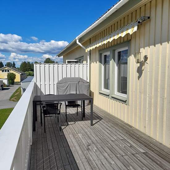 Accommodation for companies (with invoice) or private individuals. 4-bedroom house with 4 beds (3 single beds and 1 double) 10-minute drive to Skellefteå center. Bus stop nearby for easy commute to and from town. Large balcony, living room, 2 bathrooms, kitchen. House is fully furnished and the kitchen is fully equipped. 2 private parking spaces: 1 in the garage and 1 outside the front door. Monthly rent 14,000 SEK Includes: - Electricity/heat - Internet/Wi‑Fi - Water - Garbage collection - Outdoor and garage parking - Beds and linens (duvet...