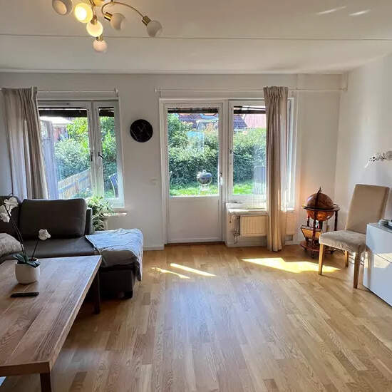 Beskrivning Möblerat gavelradhus (135kvm) med tre sovrum, (möjlighet till ett till), vardagsrum, stort allrum, två badrum, kök samt balkong och stor uteplats med tomt. Parkettgolv och nyligen renoverat kök och båda badrummen. Alla bekvämligheter såsom fullutrustat kök, badkar, tvättmaskin m.m. 15 min med pendeln till södra station och buss som går direkt utanför huset till bland annat Huddinge sjukhus. Nära skog och naturområden med fina vandringsleder. Ett stenkast från sjön Drevviken. Mycket barnvänligt område med lekplats och stor fotboll...