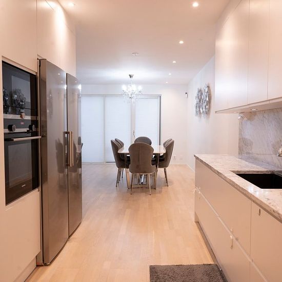 Possible to rent without a deposit through Samtrygg. Monthly cost: 23,000 SEK. ________________________________________________________________ The quickest way to book a viewing is to follow this link to Samtrygg: Here you will also find more pictures and more information. ________________________________________________________________ A townhouse (Rådhus) in Glasberga: 3 bedrooms, a bathroom and a seating/TV area on the first floor; dining/TV room, kitchen, bathroom and a small storage room under the stairs on the ground floor. Fully f...