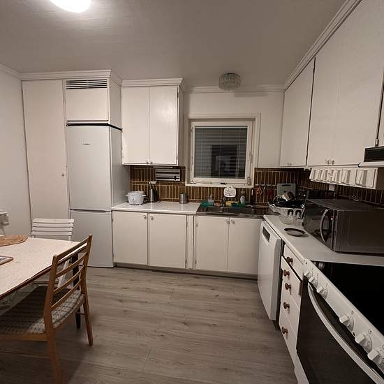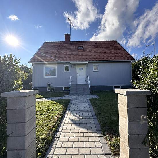Long-term rental possible! Deposit-free through Qasa. Fully renovated house. For rent furnished if desired. Heating: newly installed air-to-water heat pump 2024, resulting in low operating costs. Living area: 120 sqm Plot area: 1,250 sqm. Large, level plot. Number of rooms: 5. Newly renovated rooms. Facilities: 2 bathrooms, newly renovated, and 2 kitchens on the upper and lower floors. In other words, the property can be divided into two apartments. A large enclosed glazed terrace. Operating costs May–October approximately 2,500 SEK/month....