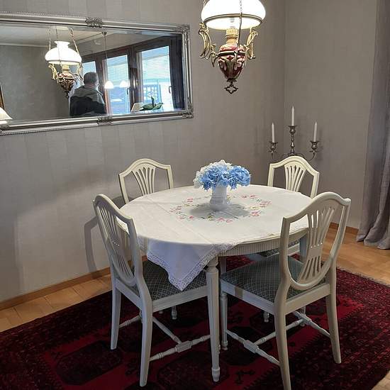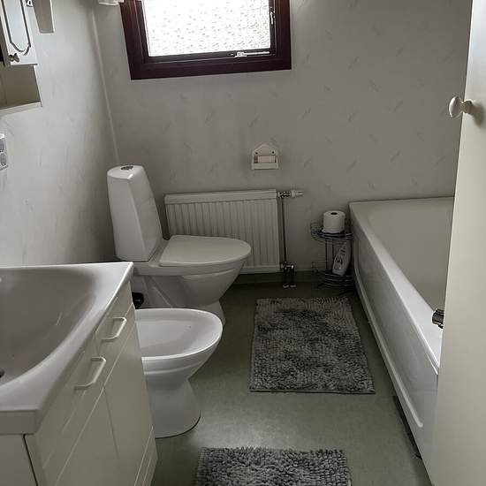 En plans villa i centralt lugn läge. 125 m2. 5 rum o h kök. Badrum och gästtoalett med dusch.Inglad utealtanFjärrvärme. Lämpligt som seniorboende. Uthyres möblerat under begränsad tid. Serviceavgift för hyresgäst: 470