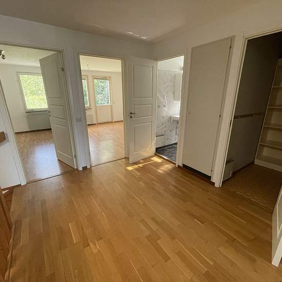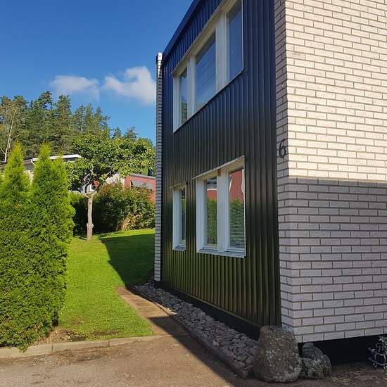 Newly renovated house in a quiet, family-friendly area of Tranås with two floors. The renovation includes new triple-glazed PVC windows and a new facade. On the ground floor you will find an entrance hall, kitchen, bathroom, living room and a laundry room. The upper floor has four bedrooms, as well as a family room and a bathroom. The home has electric heating and air-source heat pumps installed to help keep energy costs down. The house also has a low-maintenance, pleasant yard with a patio at the back. Garage and space for 2 cars. Base re...