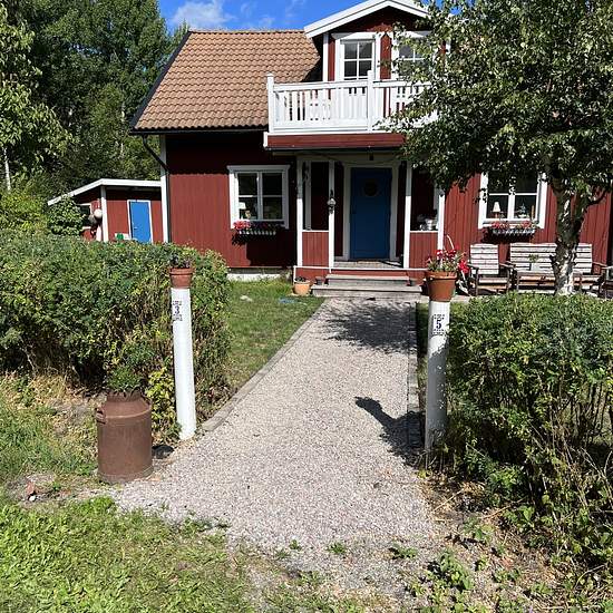 Idyllic summer house close to the city! Under an hour's drive from Stockholm's center, with a free ferry under five minutes, to a house suitable for friends, couples or families. Since the only way to get to the island is by car ferry, it's a quiet area without much traffic. Here there is a large house with two bedrooms. The master bedroom on the upper floor has a 180 cm bed as well as an extra 90 cm bed. There is also another room with two 90 cm beds. The upper floor has a two-seater sofa by the TV. On the main floor there is a kitchen wit...