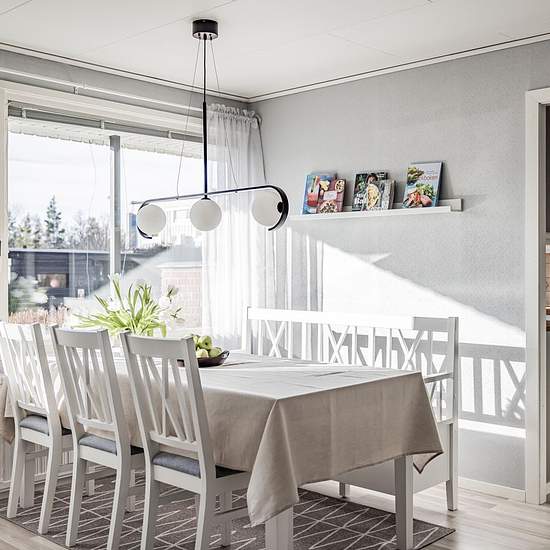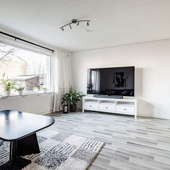 Cozy two-story townhouse located in a popular and family-friendly area in Tyresö. - 5 rooms, 4 bedrooms. - 2 bathrooms. - Direct bus to Gullmarsplan in 22 minutes. - 2 parking spaces, including 1 garage with storage. - Close to nature. - Yard at both the front and the back. - School, shop and a free bathing spot within a few minutes' walk. - Operating costs are additional. Service fee for tenant: 1190