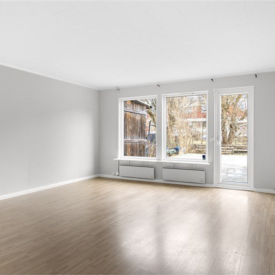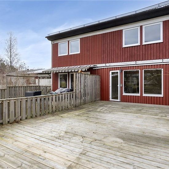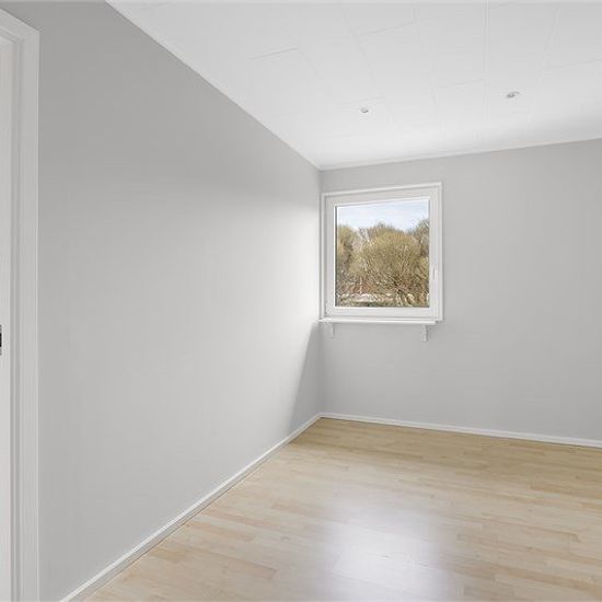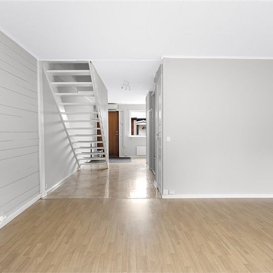 You now have the chance to rent a pleasant two-story townhouse with four bedrooms and two bathrooms. Two outdoor patios – one at the front and one at the back – make it easy to follow the sun from morning coffee to the evening's last rays. Additionally, there is a storage room adjacent to the house as well as a garage in a row. The townhouse is located in a quiet and child-friendly townhouse area with only about 500 meters to the center, school, preschool, and public transport. For those who commute, both bus and train are within comfortabl...