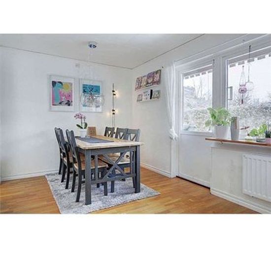 Cozy and well-planned home with bright spaces and a pleasant floor plan. Here you will find a spacious living room with plenty of room for both a sofa group and a dining table, as well as a practical kitchen with good storage. The home offers a homely feeling with nice natural light and smart spaces that suit both everyday life and socializing. Quiet and nice area close to services, transportation, and green spaces. A home to enjoy living in. Service fee for tenant: 495