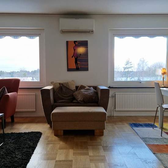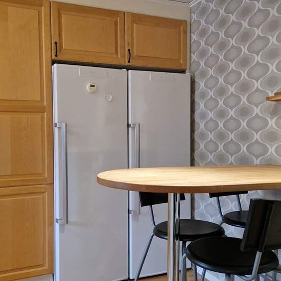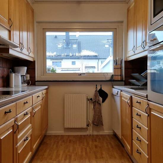 Well-planned townhouse of approximately 136 sqm living area and 28 square meters of auxiliary area located in Vällingby in the Kälvesta neighborhood. 5 rooms and a kitchen (5 ROK), 4 bedrooms over three floors, 2 WCs and two bathrooms — the one on the lower floor is equipped with a bathtub and a shower. The kitchen is fully equipped and in normal condition, there is a cold storage room at the front and a small garden area at the back. The area is a classic townhouse neighborhood within walking distance to a bus stop, close to Spånga Station...