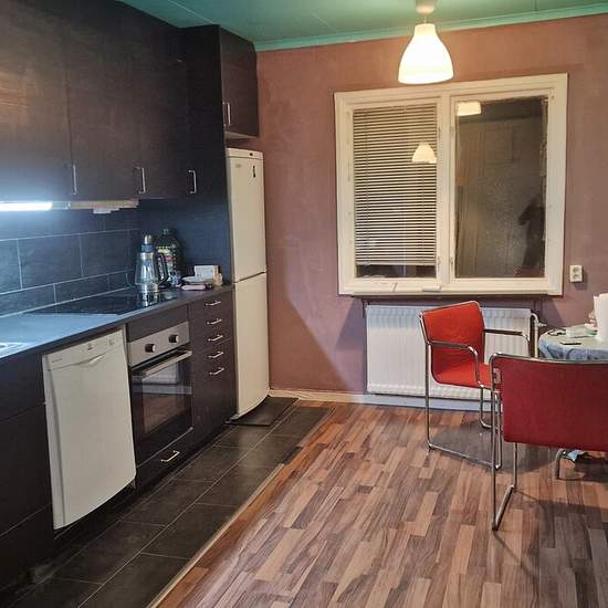 Villa for rent in Vara Municipality About the house: A large and spacious two-story villa for rent, located about 3 km from Vara town center. The house has been freshly painted and has new flooring as well as wall-to-wall carpeting in all bedrooms and corridors. Number of rooms: 5 rooms and a kitchen (including 4 bedrooms). Layout: Basement; ground floor with living room, kitchen, bedroom and bathroom with toilet. Upper floor with additional bedrooms and a separate toilet. Heating: Very energy-efficient ground-source (geothermal) heating...