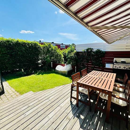 Possible to rent deposit-free through Samtrygg. Monthly cost: 31,000 SEK. ________________________________________________________________ The fastest way to book a viewing is to follow this link to Samtrygg: Here you will also find more pictures and more information. ________________________________________________________________ Townhouse in very good condition available for rent from June 2026 until further notice, minimum 1 year. 100 meters from a preschool and a bus stop, and within walking distance to the sea. Parking is available ...