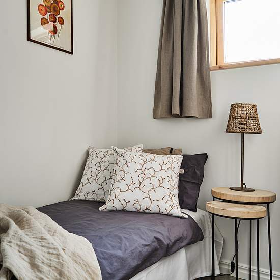 The large garden house is a newly built house with several bedrooms — excellent for a group of students who want to share accommodation in a quiet setting. Here you will live with sea views, a patio and your own grill, about 10 minutes from Visby. The house has four bedrooms: one single room, two larger rooms with a 120 cm bed and a terrace, and a double room with a sofa bed. Two bathrooms and a separate laundry room with washing machine, tumble dryer and drying cabinet. Dining area for up to 8 people and an outdoor kitchen for summer eveni...