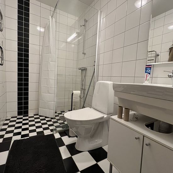 Cosy two-room apartment one floor up with nice natural light. Living room with wooden floors and access to a balcony. Practical kitchen with vinyl flooring, good storage, and space for a dining table. The fully tiled bathroom is fresh and stylish with easy-care materials. Photos coming shortly.