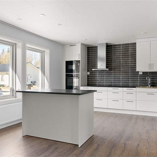 Helt nybyggt parhus på 132 m2 med 4 sovrum och två badrum, ett på varje plan stort vardagsrum och kök och fin altan