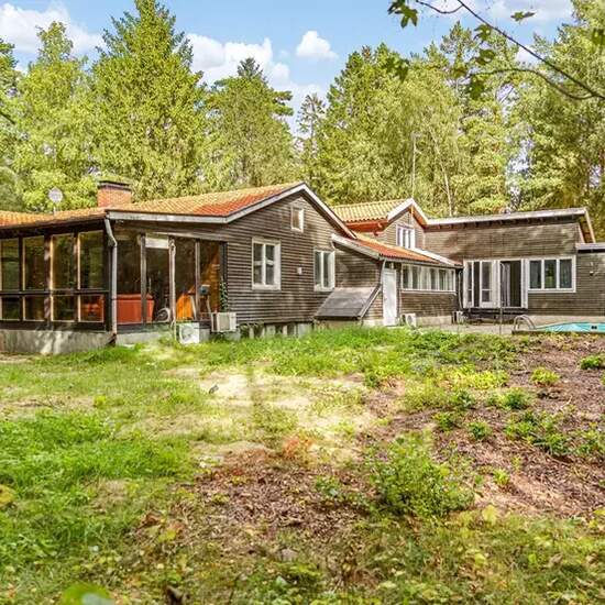 **Description** You are welcomed into a house that has been built in different stages, with varying levels that separate the kitchen, living room, bedrooms, and hidden nooks. A glazed veranda for sun worshippers, and as if that weren't enough, there is also a pool (in need of a new liner). The residence is perfectly suited for both smaller and larger families, with generously sized rooms and ample social spaces. There is a whole basement to furnish according to your needs, as well as a large associated forest plot of approximately 4000 squ...