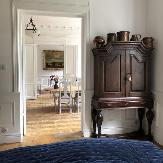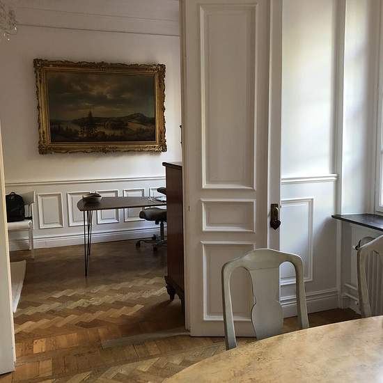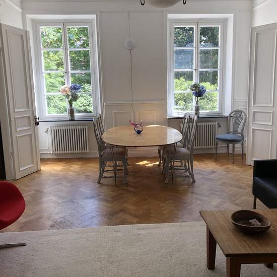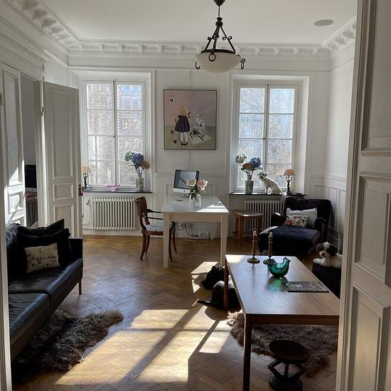 Representative apartment with three enfilade rooms. 360 cm ceiling height. Quiet. Park-side location by the elegant Stureparken. Quooker, garbage disposal Service fee for tenant: 4165
