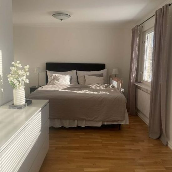 Welcome to this charming 1.5-story house located in a quiet and child-friendly area, only about 6 km from central Uppsala (about 30 minutes by bike) and with a bus connection just 1 minute from the house to the stop and 15 minutes to the center. Layout: On the lower floor, there is a spacious master bedroom with ample storage in both wardrobes and a separate walk-in closet. There is also a fully equipped kitchen with a dining area, a bright living room, and a separate dining room. On the upper floor, there are two spacious bedrooms and a ...