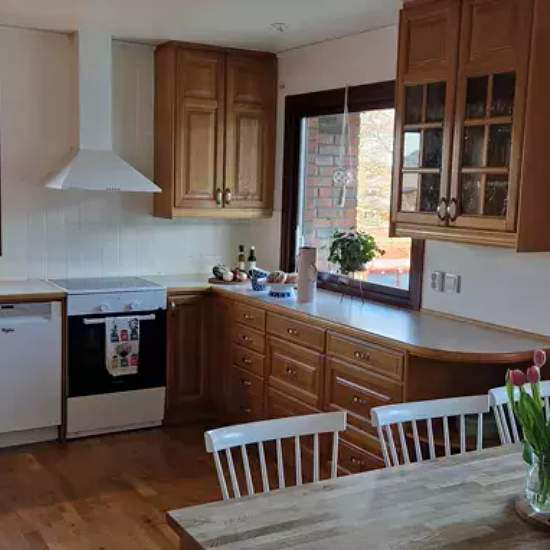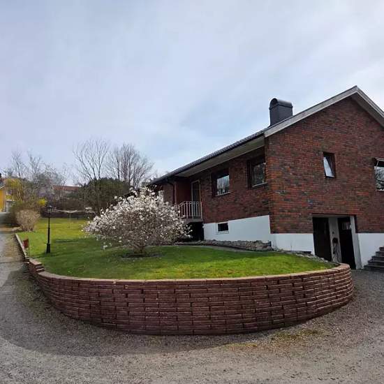 Description The house is located on a plot with a beautiful view of the Göta River, neighboring properties, and rolling natural landscapes in the distance. Spread over two levels, you have a total of 210 square meters to accommodate the needs of the whole family. From here, it is within walking or cycling distance to services, preschools, schools, and the commuter train station. The train takes you to Gothenburg Central in about 20-27 minutes from Älvängen station. Park on the gravel driveway and head towards the main entrance. Behind the ...