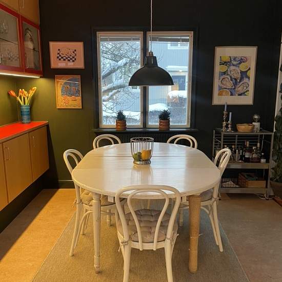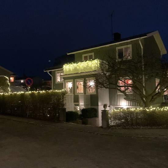 Classic single-family villa in the beautiful Norra Ängby garden city. Two floors plus basement arranged as follows: Entrance level: spacious hall, living room with TV First floor: large kitchen with dining area, newly renovated bathroom, family room with sofa seating and a bay window with an additional dining area and direct access to the patio. Level 1.5: large bedroom with high ceilings, wonderful natural light, a large wall of closets, a work- and reading corner, and views over the garden. Second floor: small hall, 3 bedrooms (one wit...