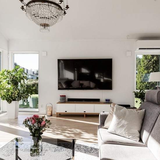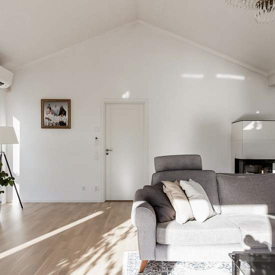 Modern house with high ceilings, at the lowest 270 cm and the highest 375 cm. Large living room with an open-plan layout with the kitchen (HTH). Master bedroom with its own bathroom and a walk-in closet with lots of wardrobes. On the other side of the house there is a family room with 3 bedrooms as well as a laundry room. There is a double garage with an electric car charger. On the plot there is also an insulated storage room with a woodshed. Lots of nice stones around the house and the garage. Nice fruit trees and a lawn. Around the plot a...