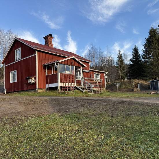 Villa with an attached small stable/barn in the countryside with a lake view. Perfect for anyone who wants to experience rural life with the opportunity to keep a few animals. Pastureland is available by agreement. The residence includes: A small WC, newly renovated. A large bathroom with WC and washing machine. Fully equipped kitchen with wood-burning stove. Living room with a wood-burning fireplace. One bedroom, dining room, living room and kitchen on the ground floor. One bedroom and a common room, which can also be used as a bedroom, as ...