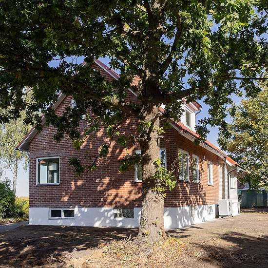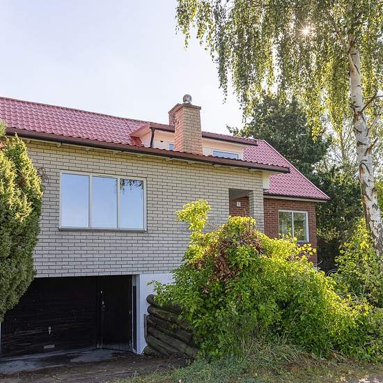 Large villa, 145 square meters with 3 bedrooms on the upper floor as well as a bathroom and a small TV corner. Possibility for an additional 2 bedrooms on the ground floor. Large living room with dining area and fireplace, fully equipped kitchen, toilet and hallway on the lower floor. Basement of about 100 square meters. In the basement there is a recreation room (gillestuga), laundry room and garage, etc. Large plot. The surfaces have been newly renovated. Private location with a magnificent view over fields. Cold rent applies; waste colle...