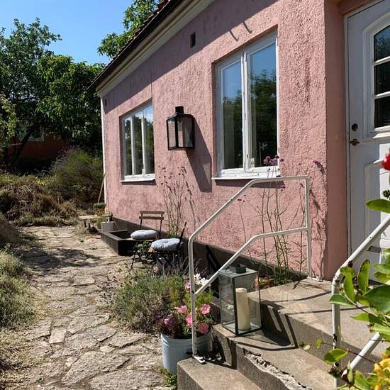 Cozy stone house of 112 sq m from 1920 with a lovely, lush south-facing garden and a stone-paved coffee nook in the shade and sheltered from the wind. Located on Storgatan, close to Simrishamn's pleasant town center with cafés, restaurants, the harbor and the sandy beach. Service fee for tenant: 594