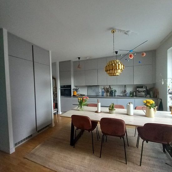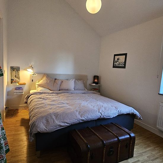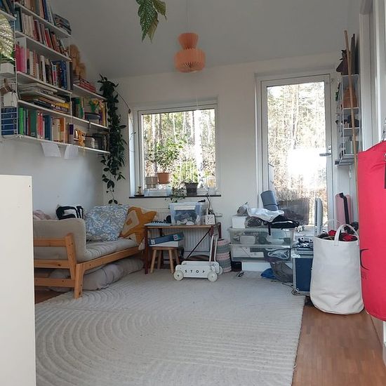 Detached villa with 1 larger bedroom and 3 smaller ones. Patio and a larger balcony of about 10 sqm on the upper floor. Living room on the lower level and family room on the upper level. 2 bathrooms. Separate laundry room. Parking for 1-2 cars on the driveway. Charging box available. The plot borders a nature reserve on two sides. Close to a bathing area and a very child-friendly and safe neighborhood. Shuttle buses to the city, Kista, and Karolinska Hospital run regularly from the area. We will be moving abroad due to work for an indefini...