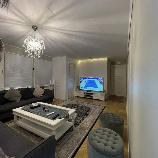 Mycket bra, lugnt och vackert läge, stort garage för flera bilar, stor trädgård med barnspel, stor altan , sido- och framträdgård med altan samt balkong... mycket lämplig för boende och avkoppling. Även ett nytt kök, två badrum, en tvättstuga, två externa förråd och förråd på övervåningen. Serviceavgift för hyresgäst: 1606