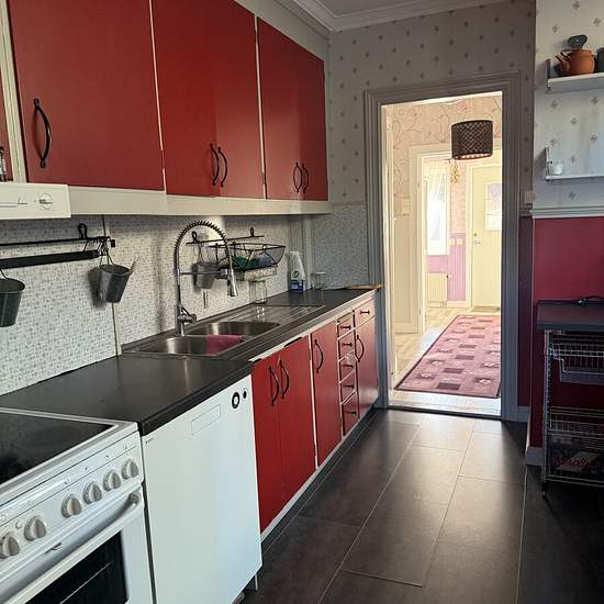 Possible to rent deposit-free through Samtrygg. Monthly cost: 10001 SEK. ________________________________________________________________ The fastest way to book a viewing is by following this link to Samtrygg: Here you will also find more photos and more information. ________________________________________________________________ Charming turn-of-the-century house with four tiled stoves. Laundry room, sauna, toilet and shower in the annex. Shower and toilet are available in the main building. Large covered terrace. Three rooms on the up...
