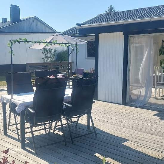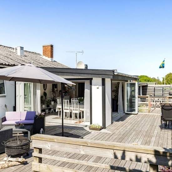 Here is a lovely home in Vitaby, with both the sea and the woods within cycling distance. You live in a well-planned single-story house with 3–5 bedrooms, and a larger living room that we have used as a big, luxurious bedroom similar to a hotel room, with a thick rug and a lovely sofa corner. The combined living and dining area is a wonderfully insulated, glazed sunroom with underfloor heating and folding doors that can be opened completely. The kitchen is fresh, modern and fully equipped. If you want and can work from home or just like ha...