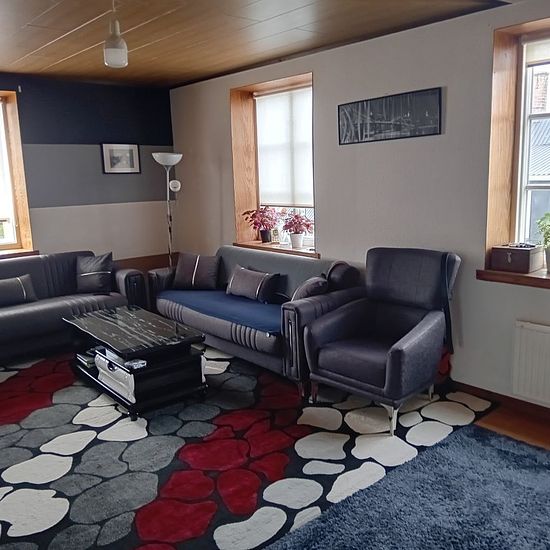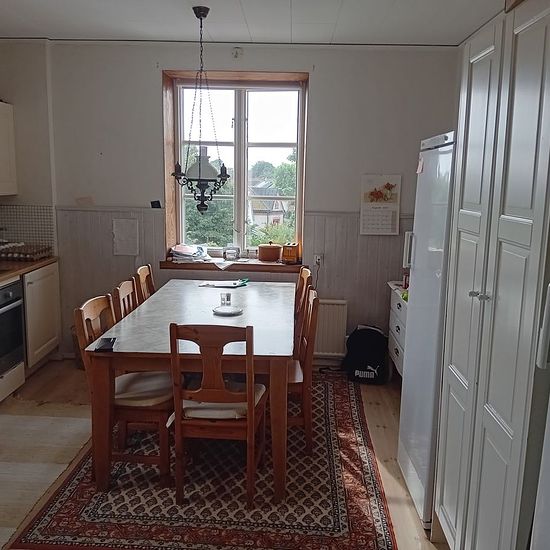 The Sjurum apartment is rented out to one person with an orderly economy; a deposit or guarantor is required. Heating & water consumption are paid by the tenant. The apartment has 2 floors with an entrance on the second floor of the building. On the first floor, there is a kitchen, bathroom, 1 bedroom & a living room. On the second floor, there are 4 bedrooms & 1 bathroom. There is a balcony, storage, and parking included. Service fee for the tenant: 396