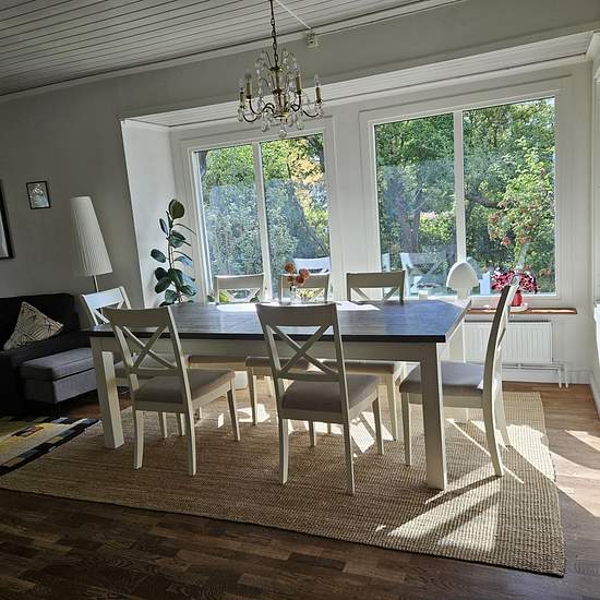 Uthyrs till korta eller långa perioder. Välkommen till denna rymliga och fräscha villa i Älvsjö, ett lugnt och trevligt område med bra kommunikationer – busshållsplatsen ligger precis utanför och på knappt 7 minuter promenerar du till Älvsjö pendeltågsstation. Villan är fördelad på tre våningar och erbjuder gott om plats för hela familjen. På entréplanet möts du av ett stort och ljust vardagsrum och ett rymligt köket, perfekt för umgänge och middagar. Härifrån når du också en rymlig altan som leder vidare ner till den gröna trädgården. H...