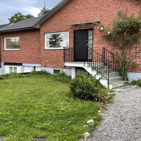 Renovated residence with a large, private plot in the best southern exposure. The home consists of the entire upper floor of a villa in a family-friendly area and includes 4 bedrooms, 2 bathrooms, kitchen, dining room, living room, conservatory, and a working open fireplace. The house is recently renovated and rented unfurnished. Parking space included. Close to Fruängen subway, Älvsjö commuter train, or Telefonplan and Gullmarsplan buses. Warm rent includes electricity, water, garbage collection, and fiber. Available for long-term renta...