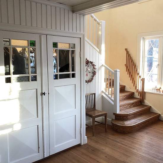 Live on a historic enclosed Dala farmstead in the picturesque village of Björbo, located along the Västerdal River! The main house's ground floor contains the following: - large hall with good storage options and a curved staircase up to the upper floor - large country kitchen with pantry, wood-burning stove and baking oven, an almost 5-metre-long dining table with room for many - living room with a Bergslagen wood-burning stove and access to a back patio - table tennis room - bedroom - toilet/shower The upper floor: - large hall with stor...
