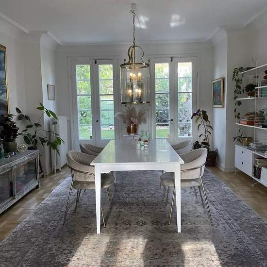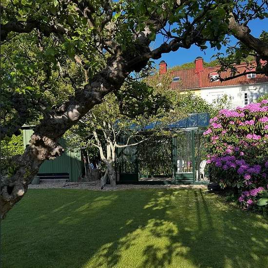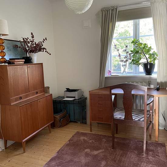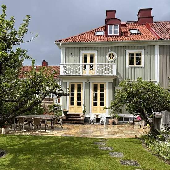 Carefully renovated 1920s house in Änggården with many preserved original details. Wooden floors, a fireplace, a tiled stove in the large bedroom, and more. Sunny kitchen, living room, 4 bedrooms, 1 study/office, 2 bathrooms, as well as an additional shower and toilet in the basement. Secluded garden with a greenhouse, old fruit trees, abundant flowers and an Italian-style terrace. Private parking. Located a short tram ride from ISGR and close to the Botanical Garden, Slottsskogen and Änggårdsbergen. Service fee for tenant: 2082