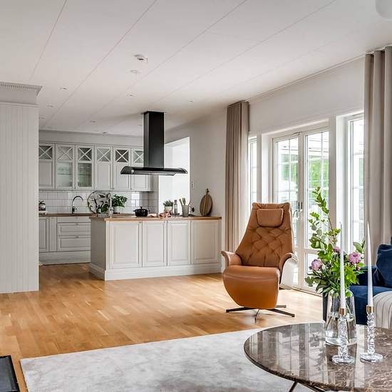 At Lingonvägen 10 you live in an unbeatable location – just a few minutes' walk from both Bärstad's small boat harbor and the child-friendly Bärstad Beach, an obvious summer paradise where both young and old enjoy sun and swimming. The villa is in consistently excellent condition – you can move in and start enjoying it right away. The home is well laid out with a clear balance between social spaces and private rooms. The entrance level offers an elegant and well-equipped kitchen, open to a bright dining room with beautiful glazing, as well ...