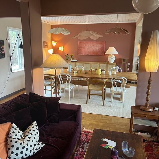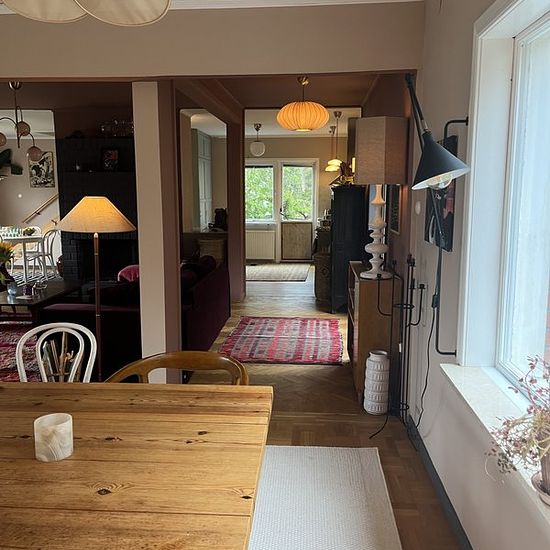 Welcome to enjoy the summer in a large and open house, sun-drenched garden, and 200 meters to Långsjön. Taking care of our two cute cats is also part of the arrangement. The house is located in Snättringe, Stuvsta — a quiet and nature-close area with easy commuting into Stockholm city. The house was built in 1935 and completely renovated in 2022, which gives you the best of both worlds: character and charm combined with modern standards. The open floor plan on the middle level creates an inviting feeling with plenty of space for the whole ...