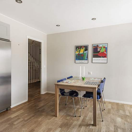 Welcome to this family-friendly house on Lidingö, available for long-term rental! Right from arrival you are greeted by a driveway that stylistically evokes the classic townhouse neighborhoods of the United Kingdom — with graphic simplicity, clean lines and a well-ordered appearance that gives a charming, slightly international impression. Inside, the home is characterized by large windows, beautiful wood floors and a warm atmosphere. The living room offers plenty of space for both a seating area and a dining area, complemented by a firepl...