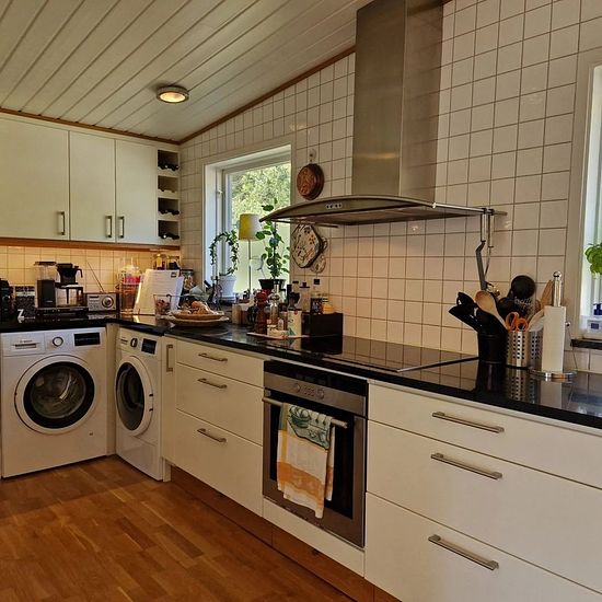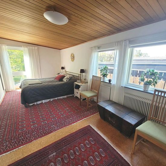 Lovely 1960s villa along Järlasjön of 140 sqm, for rent partially furnished Welcome to a 1960s villa along Järlasjön, a residential area and district in the Sicklaön part of Nacka municipality. The villa has 7 rooms and a kitchen (7 ROK), of which the garage has been converted into an extra room/bedroom and a bathroom with a washing machine. Lush garden with a Feng Shui feel, the house has fiber installed and efficient heating via geothermal heat. Large windows for maximum light, open-plan spaces that unite the living room, dining room and ...