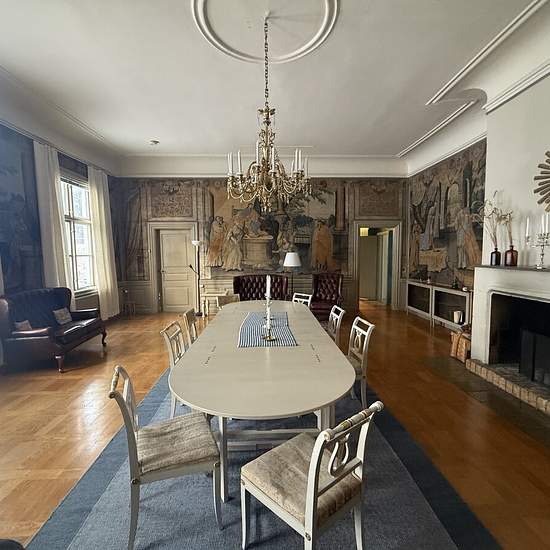 The stately large manor house at Stora Bärby, a corps de logis built in 1760, is now available for long-term rent. It is a large house with three big rooms preserved from the 18th century that will be partly furnished. On the walls of the large dining room, which also has a fireplace, there is a textile painting depicting Solomon’s coronation. In the salon there is appropriate furniture intended to remain unless otherwise agreed. Behind the salon there is a master bedroom with a beautiful 18th-century tiled stove (kakelugn), unfortunately no...