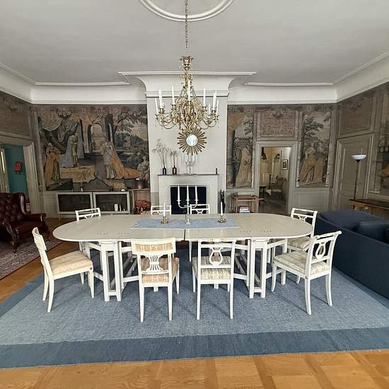The stately manor house from 1760 for rent on an ongoing basis – Stora Bärby, Örsundsbro The impressive manor house at Stora Bärby, a corps de logis built in 1760, is now available for long-term rental. It is a large and characterful house with generous reception rooms and beautiful surroundings. In the historic part there are three large rooms preserved from the 18th century, which will be partly furnished. The large dining hall has an open fireplace and the walls are adorned with a textile painting depicting the coronation of Solomon. Th...
