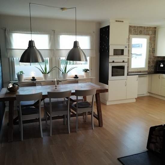 This newly renovated two-story villa is located 45 minutes from central Stockholm. Large, bright living areas in an open-plan layout in a quiet, family-friendly neighborhood. Possibility of access to a 4 x 8 meter pool. Two large fully tiled bathrooms with underfloor heating. Underfloor heating in the hallway. Two toilets, rain shower and bathtub. Two family rooms / living rooms. Rented partly furnished with one sofa on the upper floor; otherwise unfurnished. Completely clean and fresh. Spot lighting in all rooms. The furnishings in the pho...