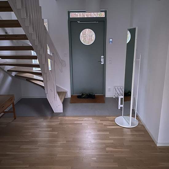 The house is from 2018 and in very good condition. Parking with a charging box for electric cars. The rent is 16,000 SEK per month + operating costs. Garden with a large deck to the west. 1.5 storeys. Shower and toilet on both floors. Bathtub on the upper floor. Parking Modern kitchen with dining table for 8 people + high chair. Bedrooms Lower floor: Bedroom with a 180 cm double bed Upper floor: Bedroom with a 180 cm double bed, bedroom with a 140 cm bed, bedroom with two single beds Bedding: duvets and pillows. Guests must bring their...