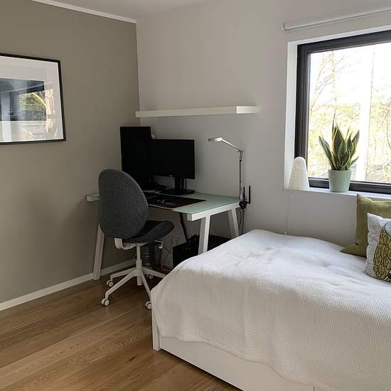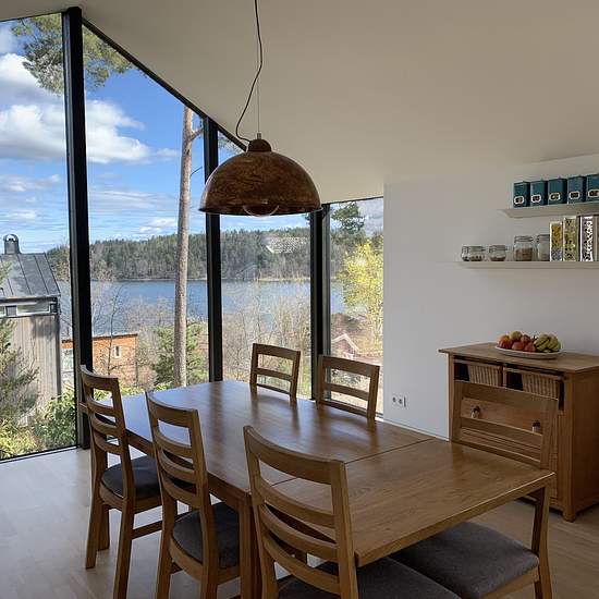 Furnished family villa on a car-free island – 20 minutes from central Stockholm This fully furnished, two-storey villa offers a rare combination of nature, privacy and proximity to central Stockholm. Located on the car-free island of Tranholmen, the home provides a calm, safe environment while remaining highly accessible for commuting and city life. The island is reached by public ferry or private boat year-round. During winter (November–April), a pedestrian bridge connects Tranholmen directly to the mainland in Stocksund, allowing easy wa...