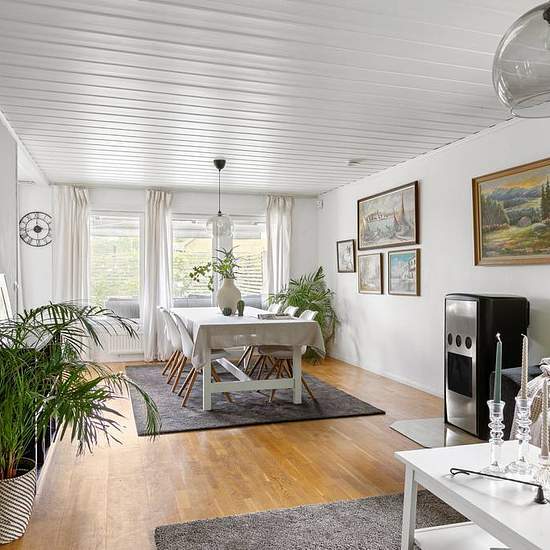 Rymligt hus i familjära Valbo Välkommen till detta gedigna hus i Valbo med närhet till både förskola och skola - Perfekt för barnfamiljer! Här har du hela 163 kvm boyta fördelat på två plan. Entréplan har en rymlig hall med plats för avhängning. Vardagsrum och kök i en öppen planlösning och gott om plats för både matgrupp och soffgrupp. Köket är stilrent med gott om plats för förvaring och den stora köksön ger goda arbetsytor. Vidare in finns ett sovrum, badrum med badkar, separat tvättstuga, samt en utbyggd del med egen igång. Här finns ett...