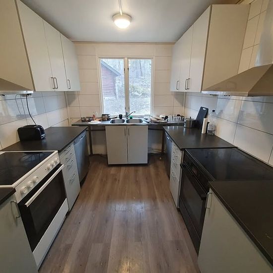 House in the countryside for rent, mostly to companies. 7 small rooms, a small storage room, 2 toilets, kitchen, large living room, shower cabins, and washing machine and dryer. Plenty of parking outside the house. It is located in a nature-close area without any public transport, so a car is necessary. Animals are nearby. An old house with renovated surfaces. Smoking is prohibited. Deposit rents and advance payment. Electricity costs apply. Immediate move-in. Access to workshop & additional storage after agreement.