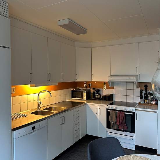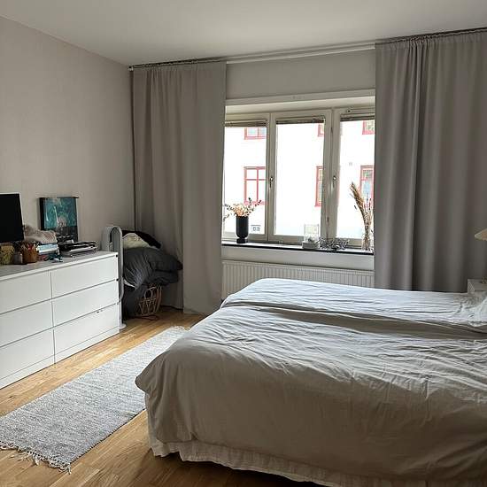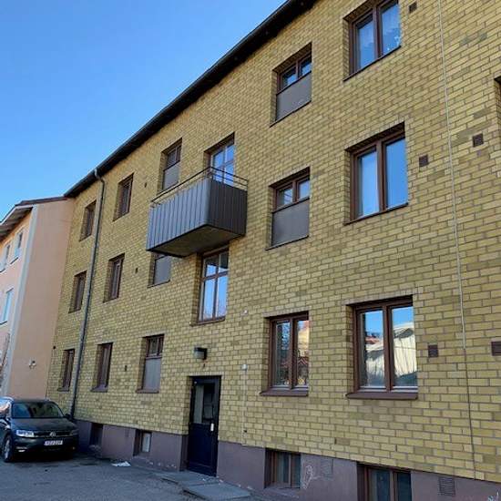 Fin trea med centralt läge. Balkong. Parkett i sovrummen och i vardagsrummet. Plats för tvättmaskin i badrummet. Trevlig gård med uteplats.